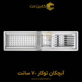 آبچکان توکار 70 سانت دارای طول 70 سانتی متر، عرض 18 و عمق 16 سانتیمتر است. این محصول یکی از مدلهای آبچکان است که فضای بسیار کاربردی را می تواند در آشپزخانه شما ایجاد کند و بهترین گزینه برای استفاده در جزیره آشپزخانه است. در صورت استفاده ازآبچکان توکار شما می توانید از کابینت های هوایی که قبلا در آن آبچکان ظروف قرار می گرفت استفاده نموده و فضای بیشتری برای قرار دادن ظروف داشته باشید. آبچکان روی کار را می توان علاوه بر صفحه کابینت ها بر روی جزیره نیز اجرا نمود در صورت استفاده از آبچکان روی کار در آشپزخانه شما شاهد فضایی بسیار دلنشین و مدرن خواهید بود .